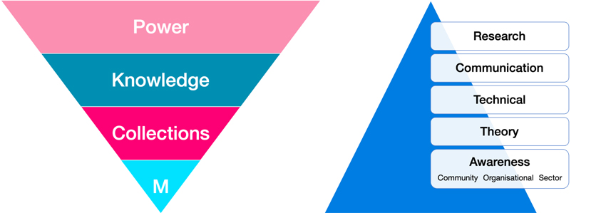 Left: Model of museum power based on an inverted pyramid; right: Competencies in five key areas of skill and awareness © Tehmina Goskar /Curatorial Research Centre