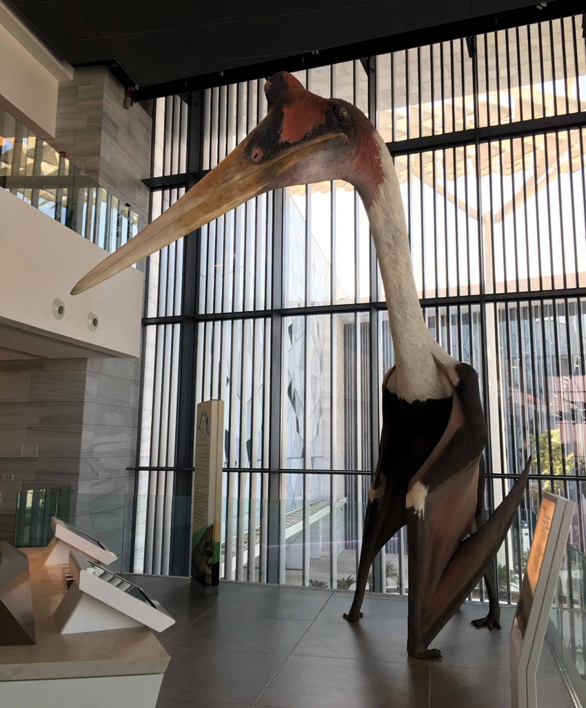 Each museum has a glass clad wing protruding from the end, allowing visitors a glimpse of the exhibits in the evening from the external Public Realm areas. The Prehistoric Life wing includes an impressive 17-metre-long prehistoric whale suspended above four striking displays of giant beasts from the distant past.