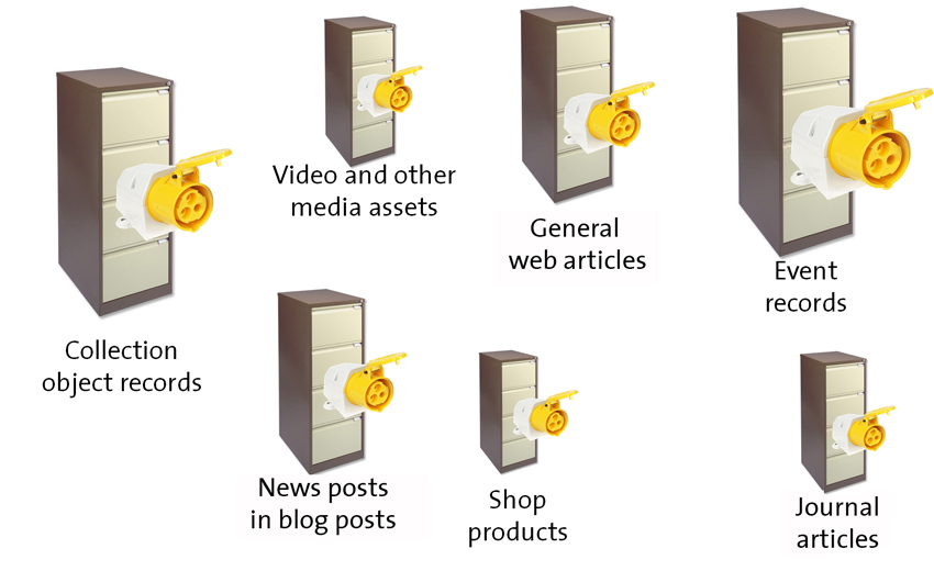 Collection records are a common and obvious source of digital assets in museums, but the concept applies to any source of digital records. Data in each of your core authoritative organisation-wide systems should be considered for use as digital assets. This might include event databases, online shop databases, media repositories for audio/video/multimedia, even HR databases as a reliable source of staff names and titles (see Figure 3).