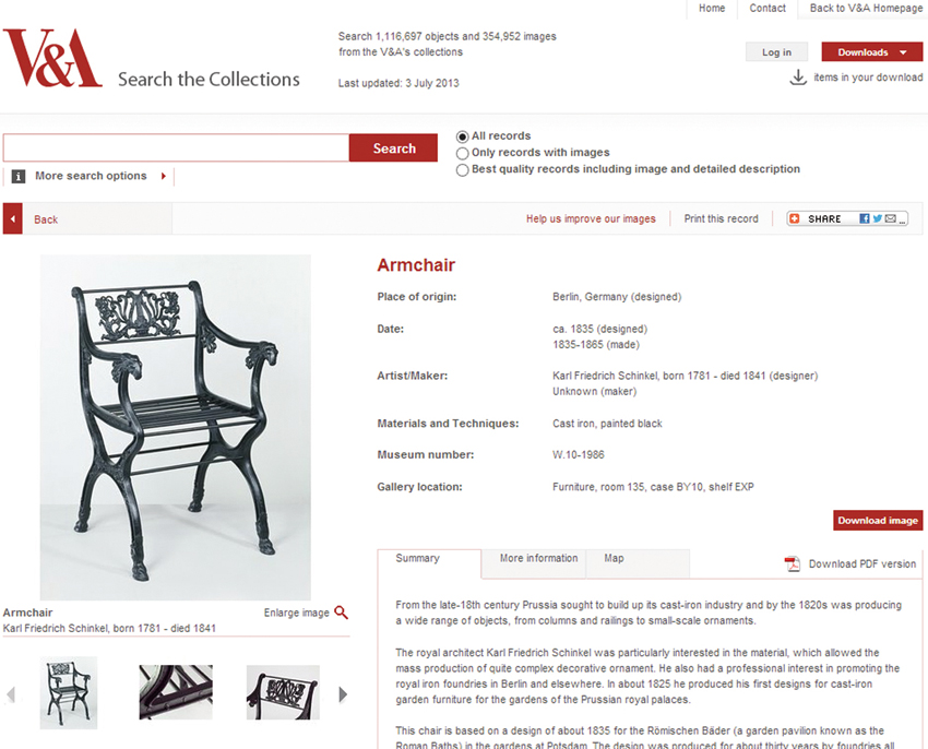Figure 4 shows a typical public record for a chair in the V&A’s furniture collections. All the information on display is taken from the curator-maintained museum collection catalogue.