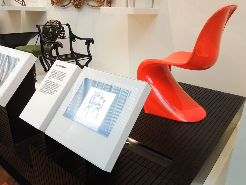 In 2012, the new Furniture Gallery opened. One of the challenges was to show object information from the collection for many objects on display whilst taking less physical display space than traditional printed labels would. We developed a new digital labels interface with the project team to display collection information for multiple items of furniture in the displays. These not only took up less space, but allowed remote updating by curatorial staff.