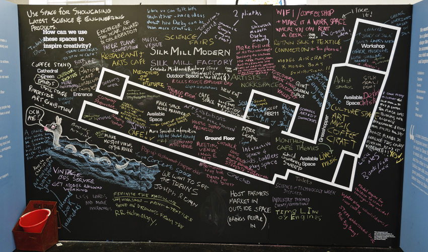 Our next step was to ask people what they really wanted to see and do. Over one weekend we invited visitors to share their ideas and their responses were ambitious and varied, including a cafe, a space for engineering events, science, creative activities, a concept called “Silk Mill Modern” – even for it to be used as a live music and festival venue.